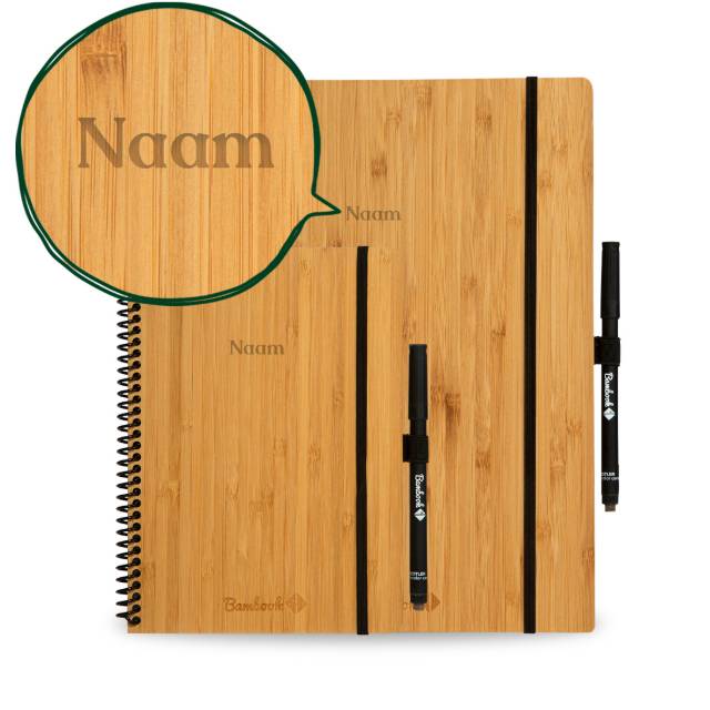 Hoe gaaf zou het zijn als de naam van de ontvanger op het notitieboek van Bambook zou kunnen zetten? Heel gaaf! En vanaf nu is het mogelijk! Voor een kleine meerprijs graveren we een naam of tekst op een Bambook hardcover notitieboek. Extra bijzonder én persoonlijk, want dan is er echt maar één notitieboek zoals die van jou. Naast het laseren van een naam kun je bijvoorbeeld ook denken aan: Een jaartal (geboortedatum, trouwdatum). De toepassing waarvoor je het gaat gebruiken (reisdagboek, dagboek, recepten etc.) Ideeën genoeg om jouw cadeaute personaliseren! Maak je uitwisbare notitieboek extra persoonlijk met deze op maat gemaakte Bambook met gegraveerde naam. Personaliseer de hardcover Bambook en verblijd jezelf of je geliefden met dé duurzame manier van schrijven.