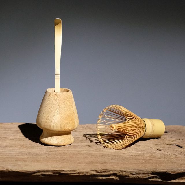 Gebruik de bamboe lepel voor de juiste dosering van de matcha thee. Houd je bamboe klopper losjes in de hand en beweeg de klopper zigzaggend door de kom met matcha. Je bergt de matcha klopper netjes en veilig op door het over de bamboe houder heen te schuiven.