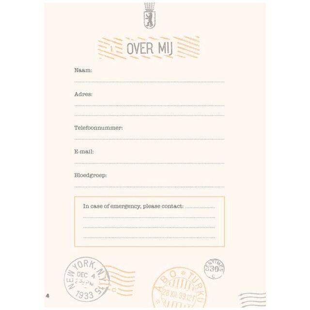 Leg je unieke reisverhalen en ervaringen vast in Mijn reisdagboek. Door de handige compacte vorm kun je het gemakkelijk overal mee naartoe nemen. Behalve je reisverslagen kun je ook praktische zaken noteren, zoals contactgegevens van mensen die je ontmoet of een overzicht van je uitgaven. Zo houd je alle informatie per reis netjes bij elkaar. Mijn reisdagboek is een mooi cadeau om te geven voor aan iemand die geslaagd is en van plan in om te reizen – ook leuk voor in de zak van Sinterklaas of onder de kerstboom.